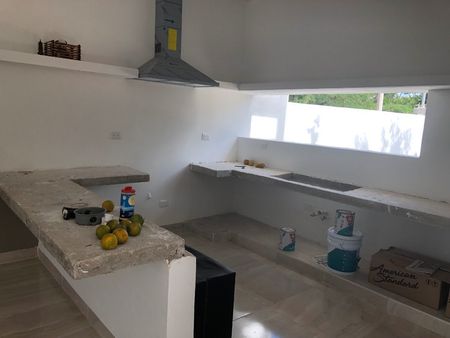 Cocina con meseta y barra de granito y tarja doble